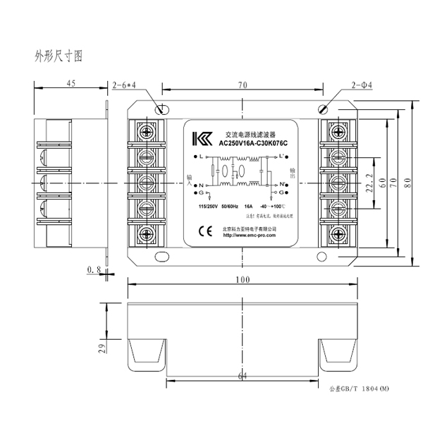 交流单相、双共模+差模,输入端采用交流滤波端子,有效提高滤波器的高频干扰抑制能力。